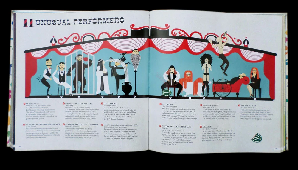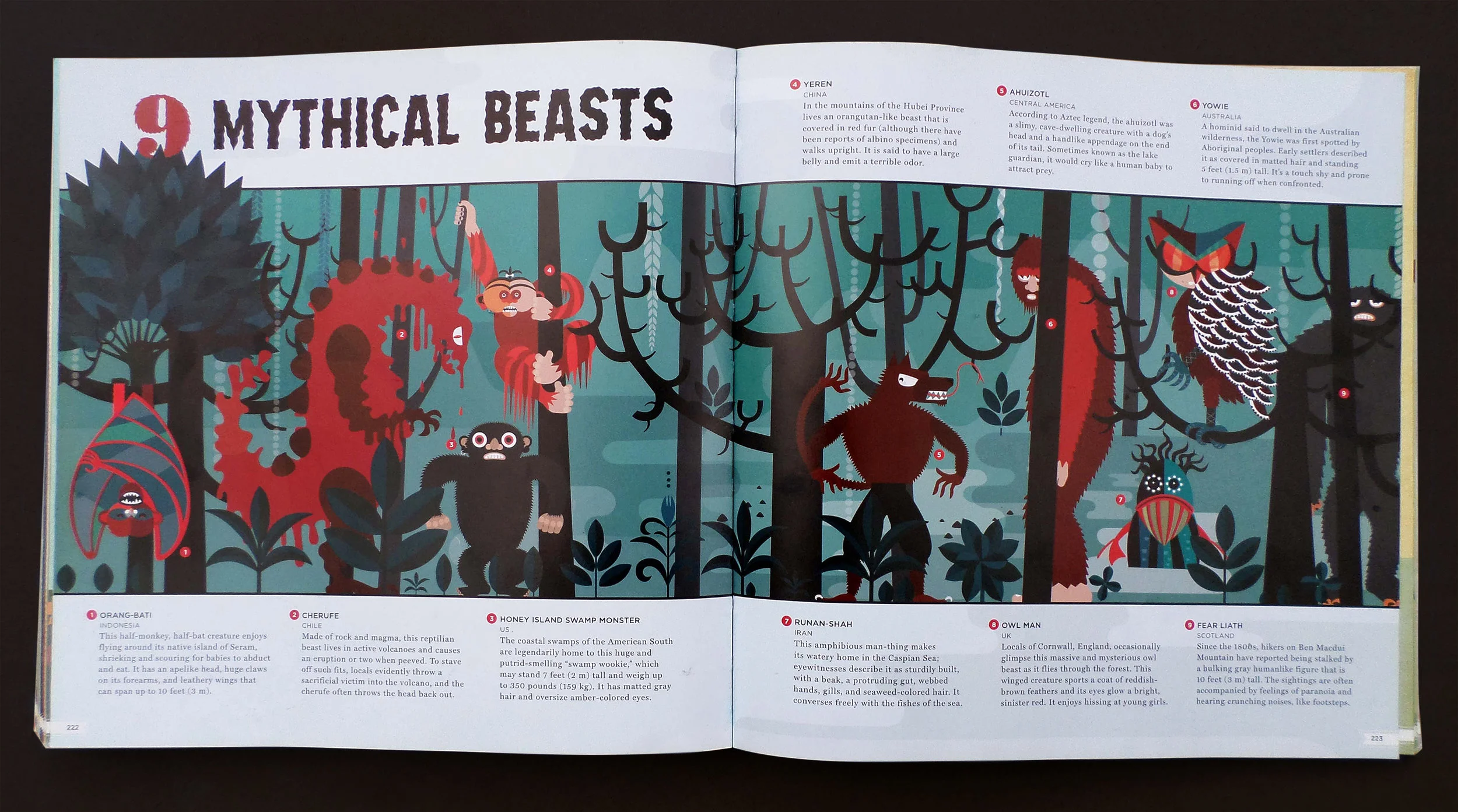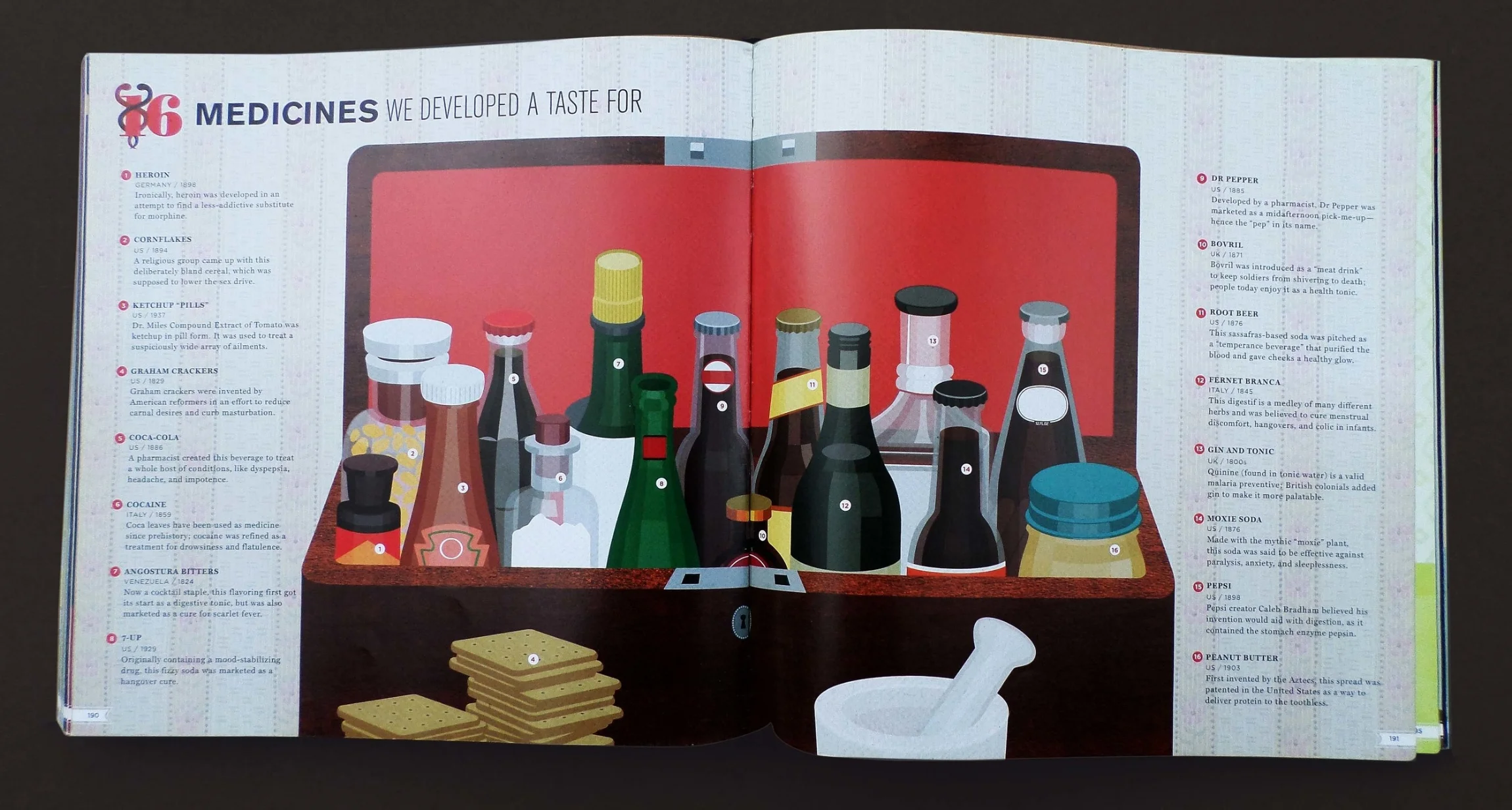Illustrations and page design for Listomania, an infographic guide to everything unusual.